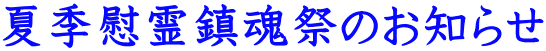 夏季慰霊鎮魂祭のお知らせ